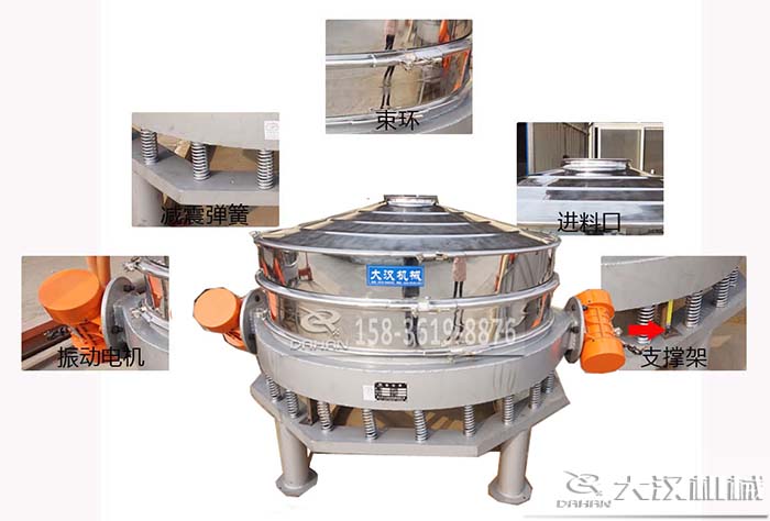 直排篩又被稱為直排式振動篩,被分單振源和雙振源兩種,單振源作用到物料上主要產生上下振動,不具備自動排料功能,雙振源能在篩面上產生渦旋運動,具有自動排料功能,主要用于粉體生產線工藝流程中的粉體的除雜,篩松作用,是大漢機械工作經過多年的設計開發研制成的多功能、高效率的篩分設備。